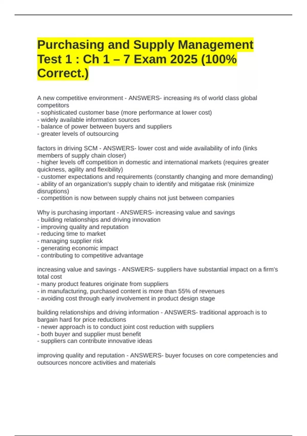 PURCHASING AND SUPPLY MANAGEMENT EXAM BUNDLE