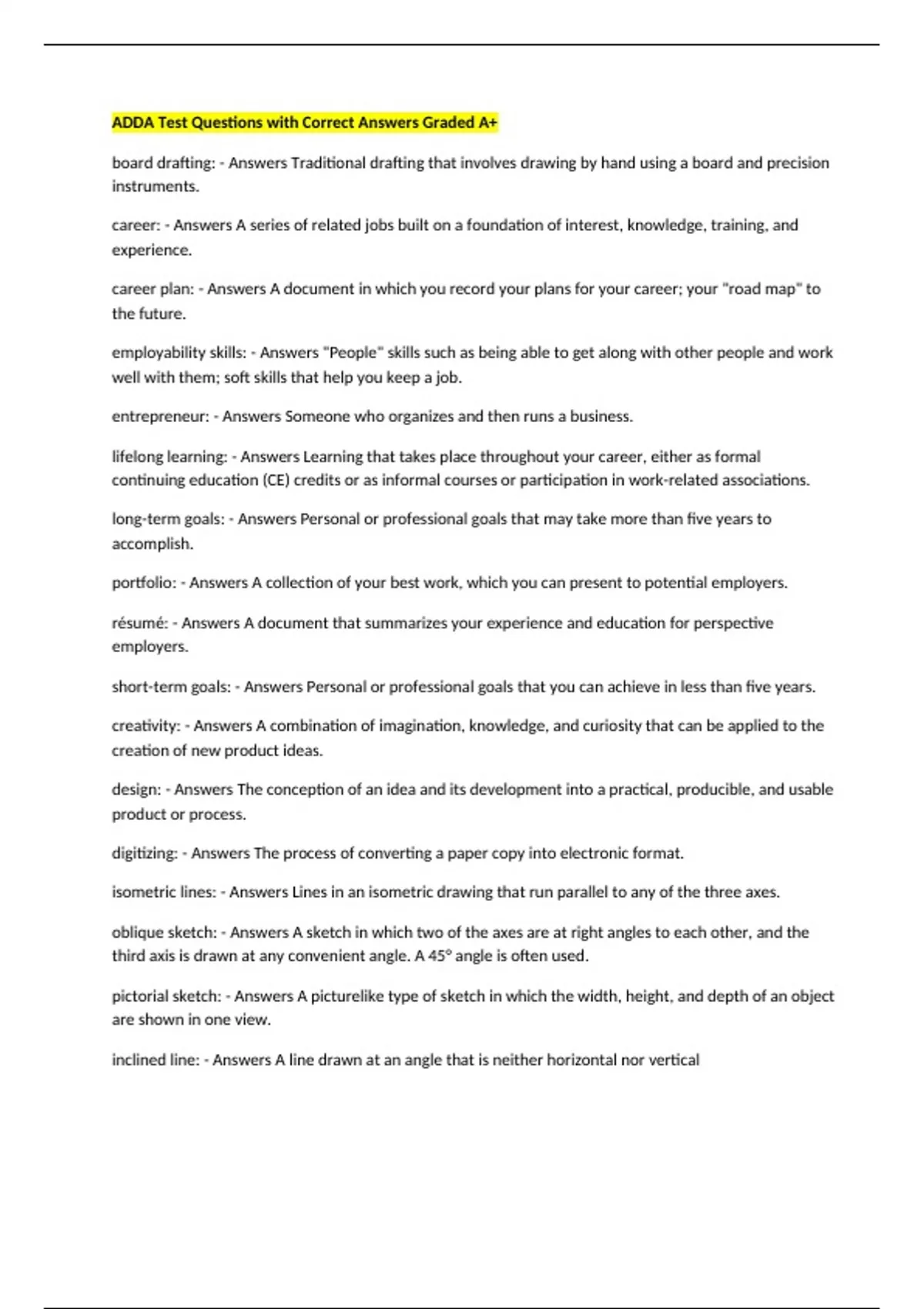 ADDA Bundled Questions and Answers Solved Correctly Latest Update 2025/2026