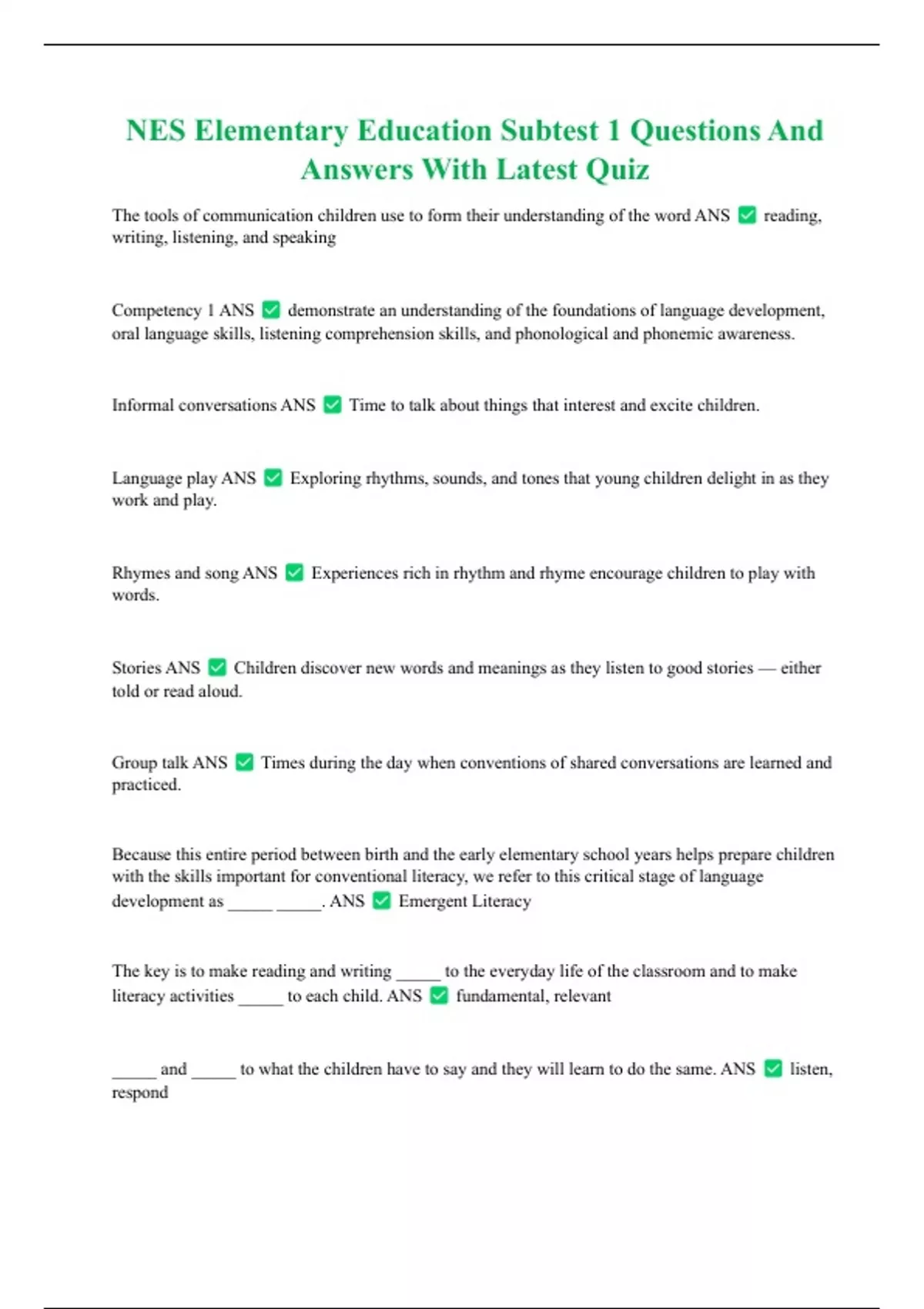 NES Elementary Verified Package Deal With Real Tests