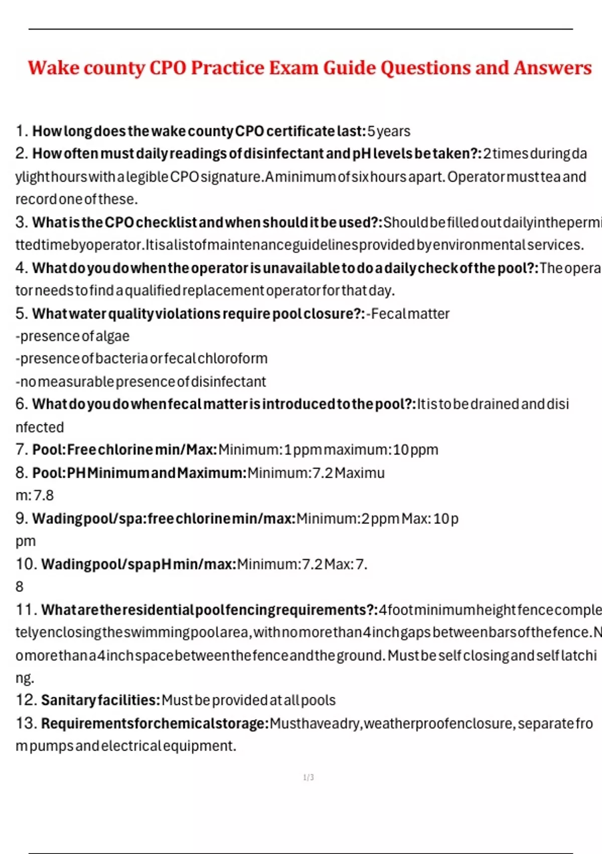 CPO Practice Exam Review with Verified Answers 100% Certified Paraoptometric (CPO) Exam Questions and Correct Answers Certified Pool Operator Handbook Practice Test – 2025 (Correct Answers) Wake county CPO Practice Exam Guide Questions and Answers CPO Test Exam Questions and Verified Answers CPO State EXAM (New Curriculum) Questions and Answers 10