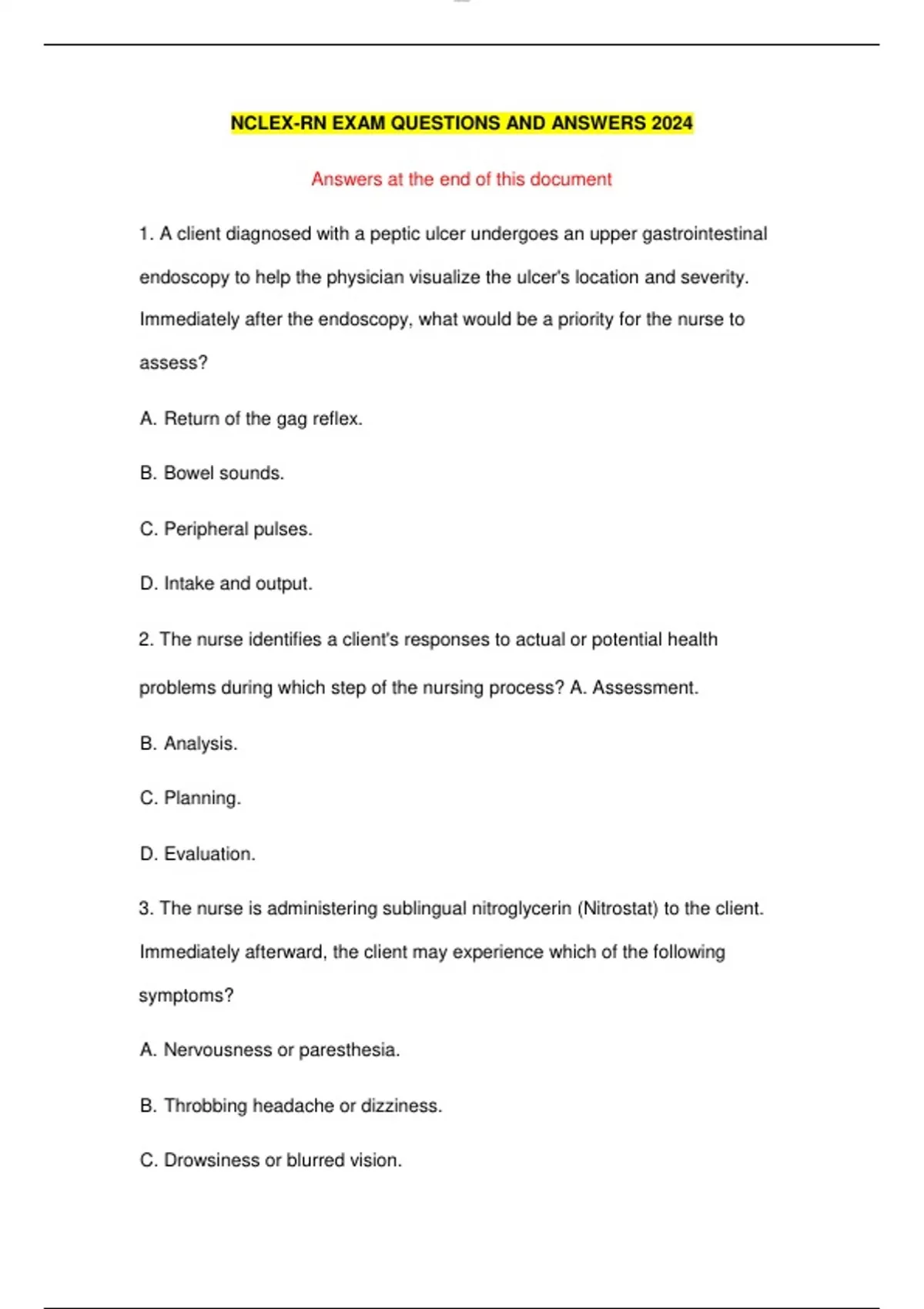 NCLEX-RN EXAM QUESTIONS AND ANSWERS 2024