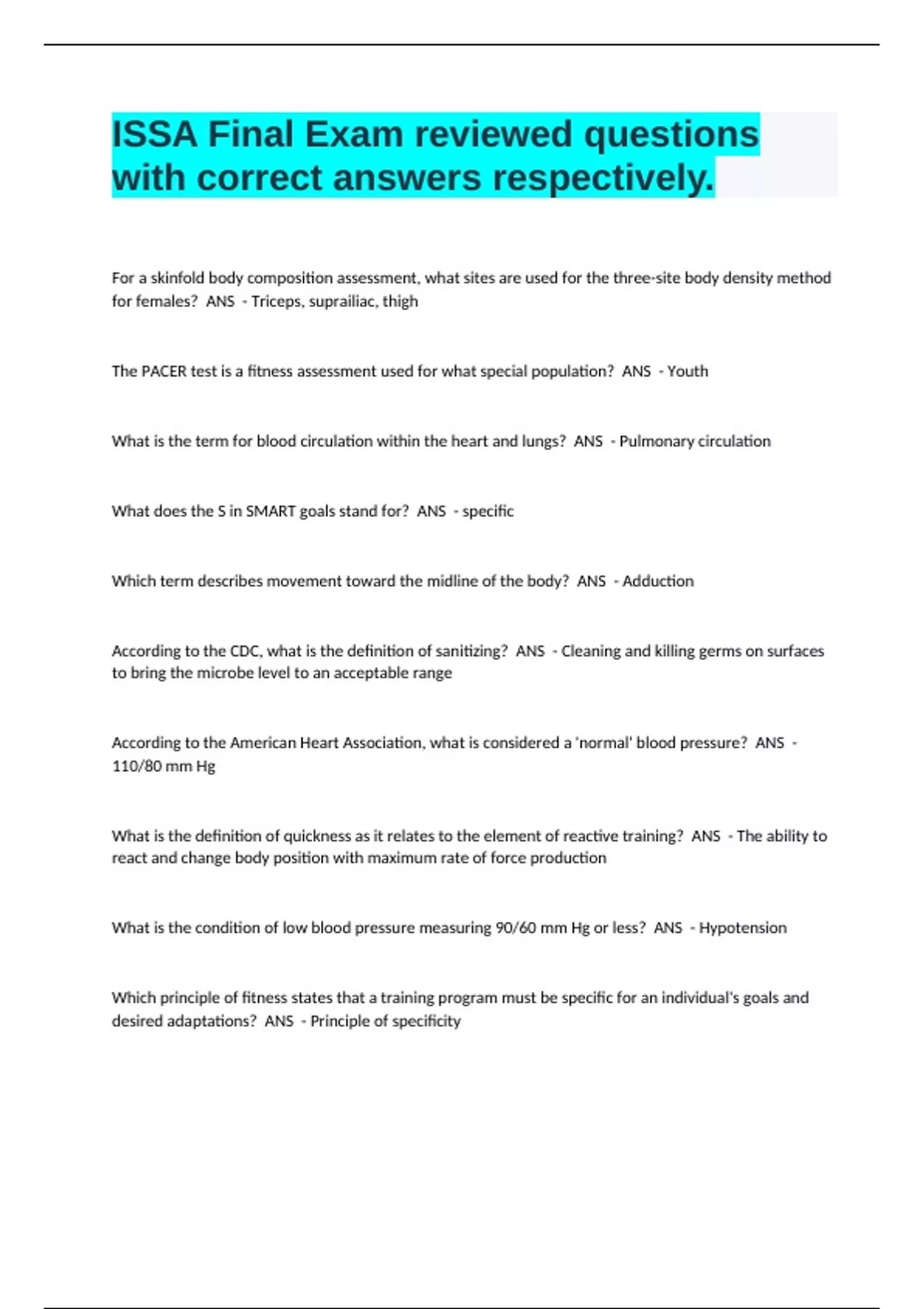 ISSA Bodybuilding Exam Package Deal Questions with correct Answers 2025/2026( A+ GRADED 100% VERIFIED)