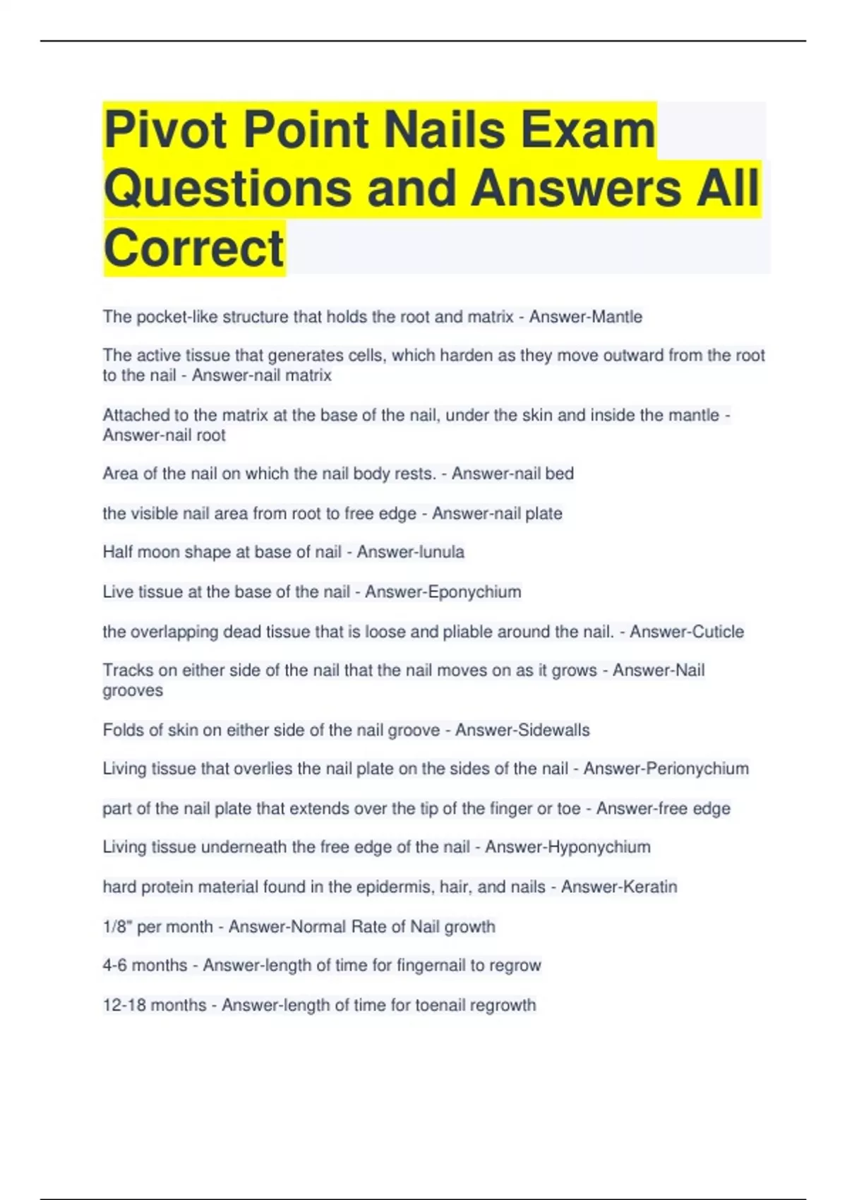 Bundle For PIVOT POINT NAIL EXAM QUESTIONS WITH CORRECT DETAILED ANSWERS