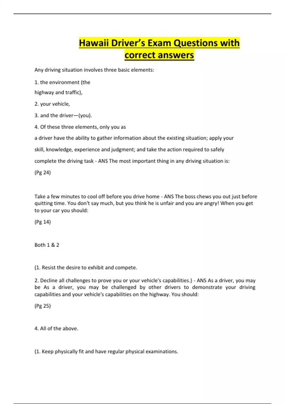BUNDLE OF Hawaii Drivers EXAMS| LATEST UPDATE QUESTIONS& ANSWERS