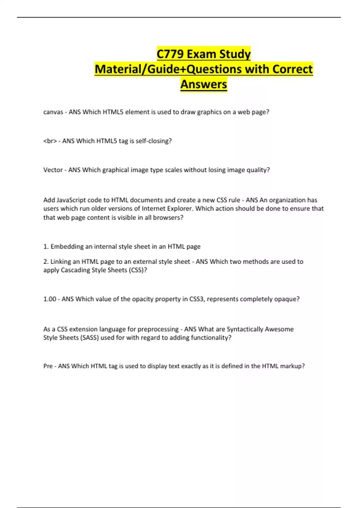 C779 Exam Study Material/Guide+Questions with Correct Answers
