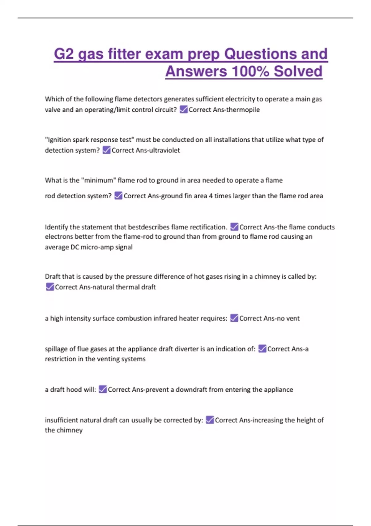 G2 gas fitter exam prep Questions and Answers 100% Solved 2 Exam (elaborations) MCC-NH Gas Fitters Exam Questions with Answers Verified by Experts 3 Exam (elaborations) Gas fitter 2 practice test Questions with Correct Answers