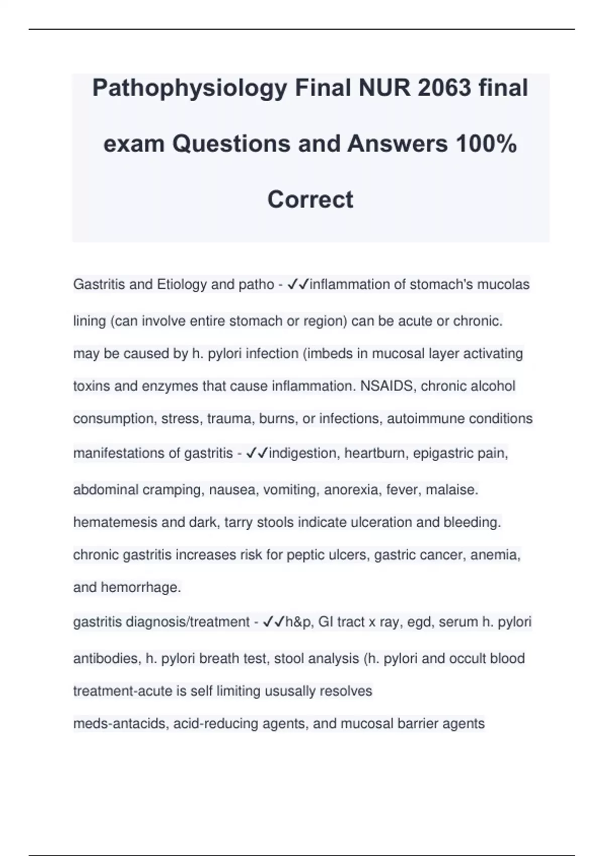 Pathophysiology Final NUR 2063 final exam Questions and Answers 100% Correct