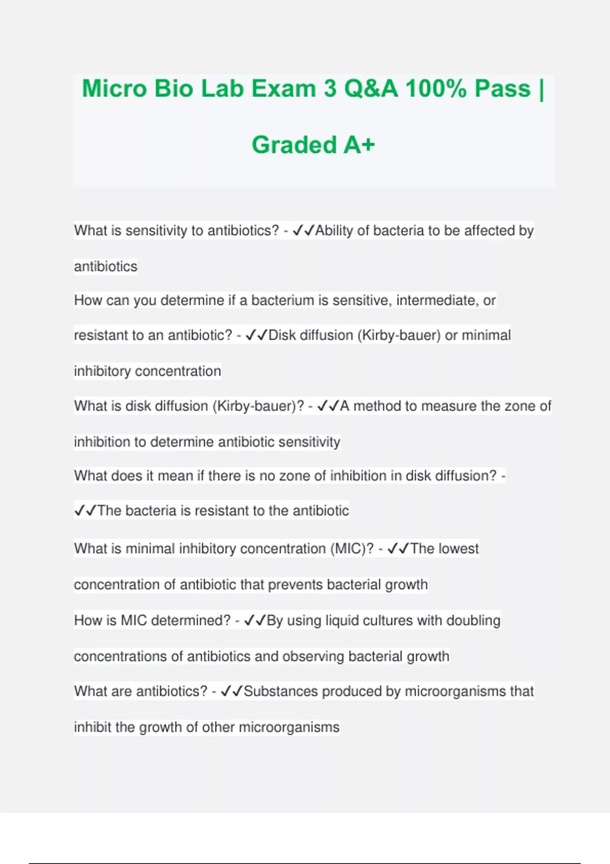 Micro Bio Lab Exam 3 Q&A 100% Pass | Graded A+