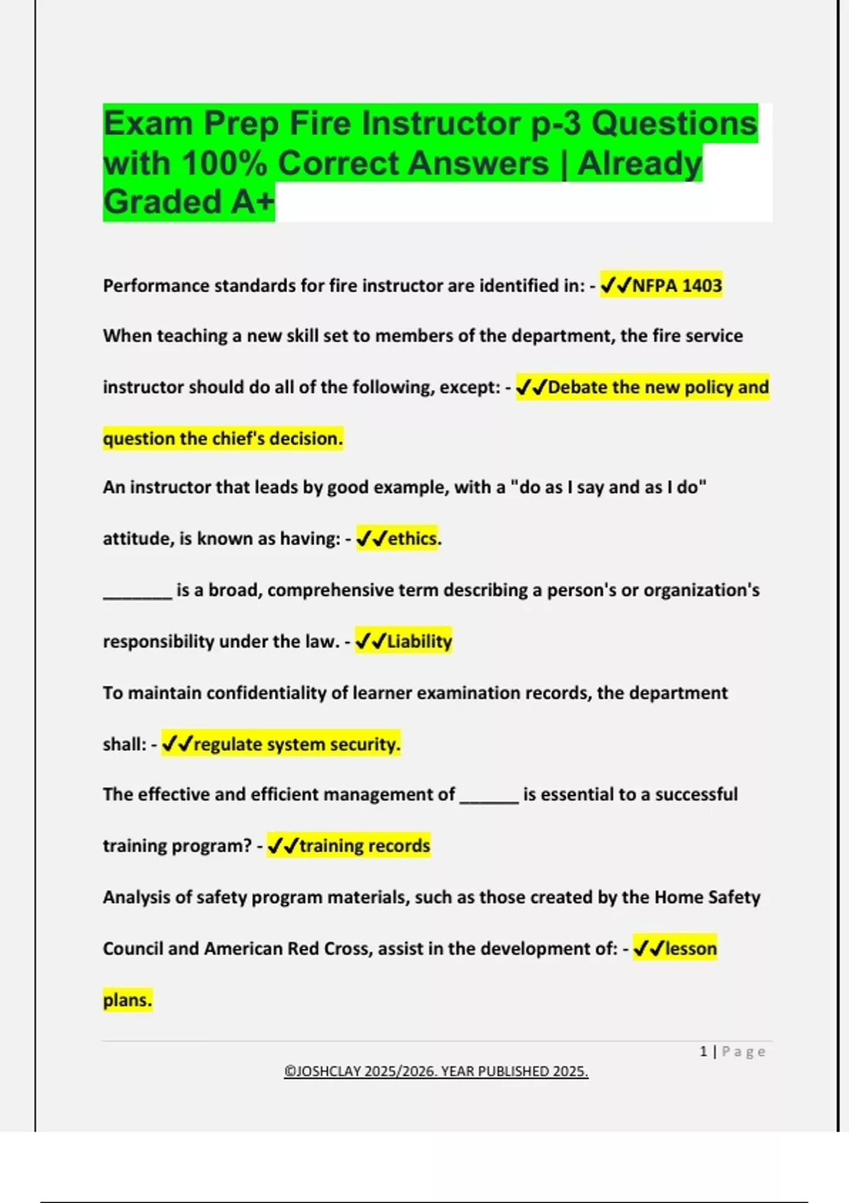 FIRE INSTRUCTOR EXAM PACKAGE DEAL QUESTIONS AND VERIFIED DETAILED ANSWERS | 100% GUARANTEED PASS | ALREADY GRADED A+