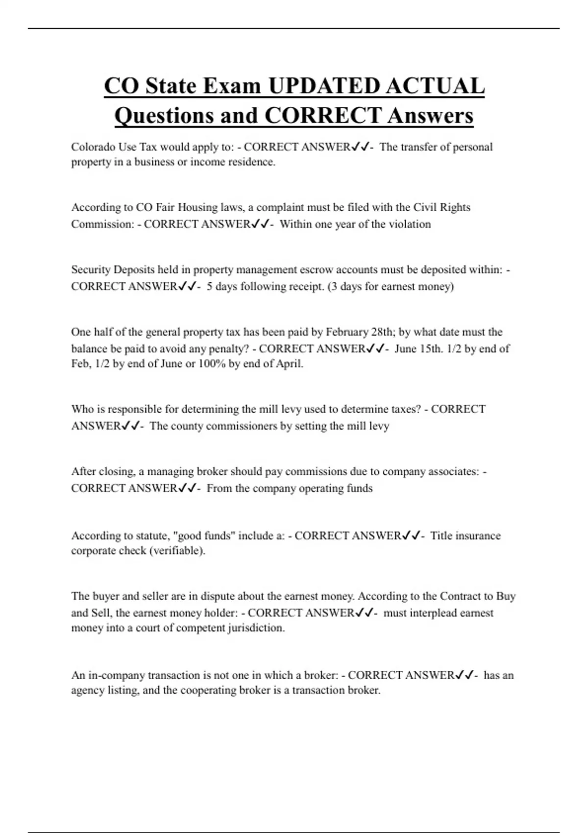 CO State Bundled Exam Questions and CORRECT Answers