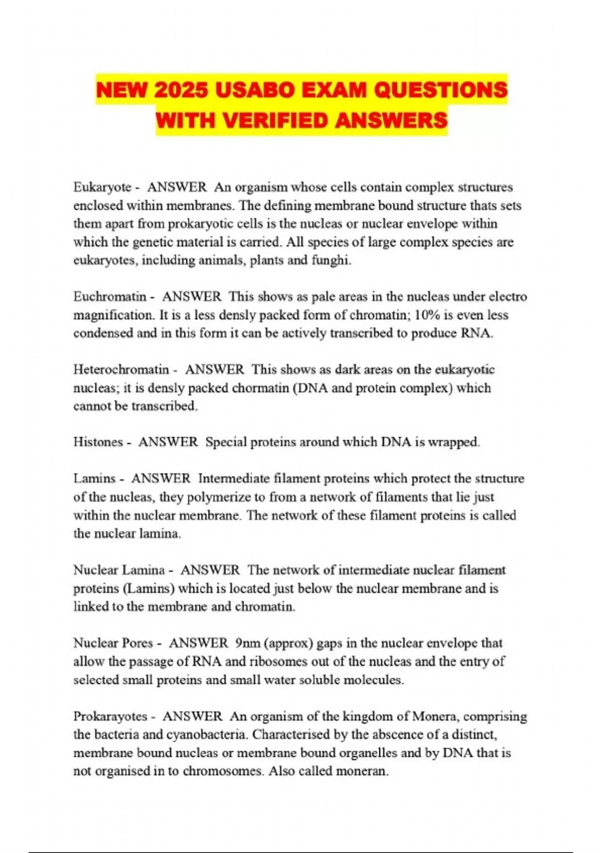 NEW 2025 USABO EXAM QUESTIONS WITH VERIFIED ANSWERS