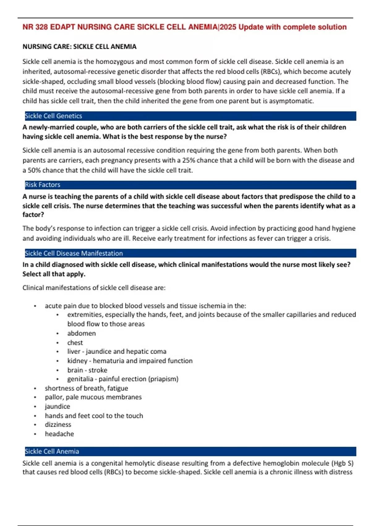NR 328 EDAPT CHILD ABUSE CASE STUDY NR 328 EDAPT TONSILLITIS CASE STUDY NR 328 EDAPT NURSING CARE MUSCULAR DYSTROPHY NR 328 EDAPT NURSING CARE: PEDIATRIC ELIMINATION: URINARY ALTERATIONS NR 328 EDAPT NURSING CARE SICKLE CELL ANEMIA