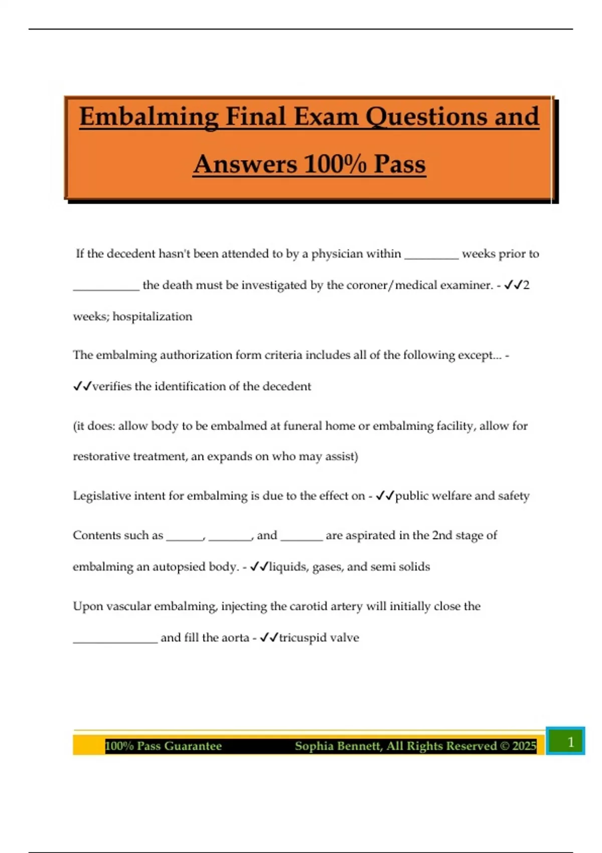 Embalming Bundled Exams Questions and Answers 100% Pass Assured