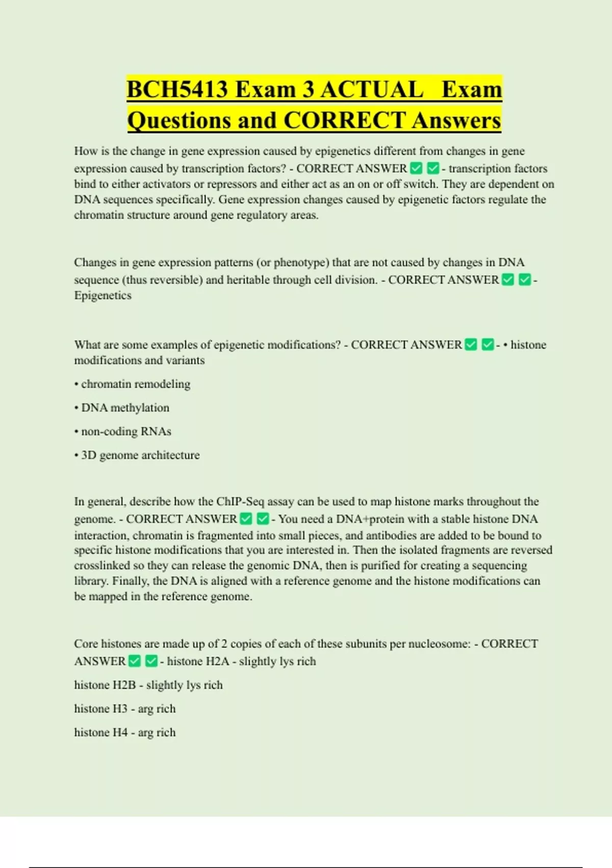 BCH5413 Bundled Exam Questions and CORRECT Answers