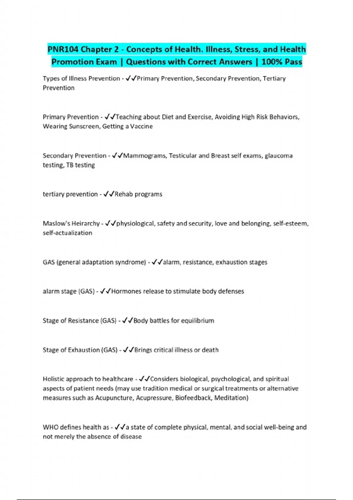 EXAMS BUNDLE:::: PNR104 Exam | Questions with Correct Answers | COMPLETE AND ACCURATE