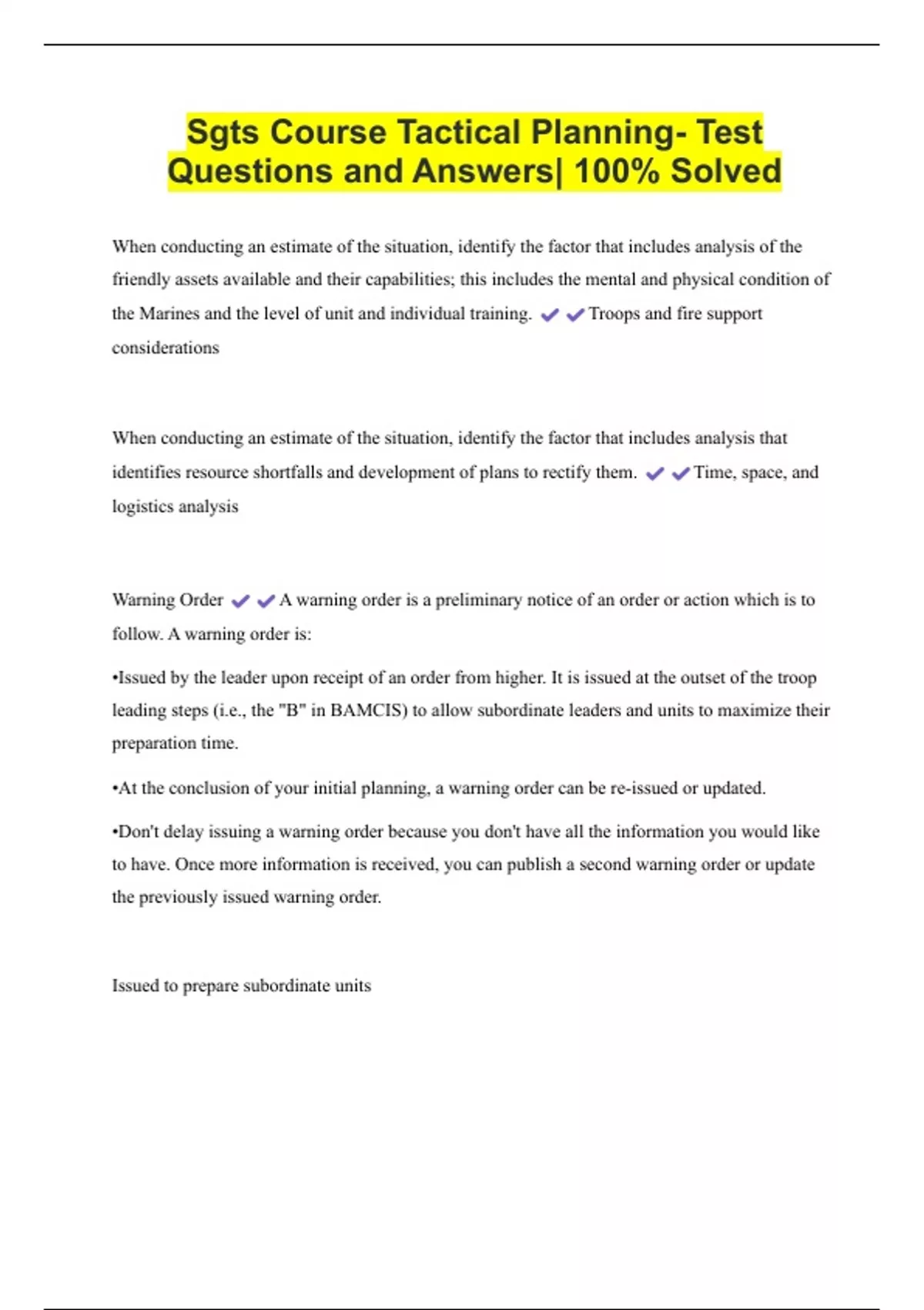 Sgts Course Leadership II Questions and Answers| 100% Solved 2 Exam (elaborations) Sgts Course Squad Operations- Questions and Answers| Latest Update 3 Exam (elaborations) Sgts Course Tactical Planning- Test Questions and Answers| 100% Solved 4 Exam (elaborations) Sgts Course Training Questions and AnswersSgts Course Training Questions and Answers|
