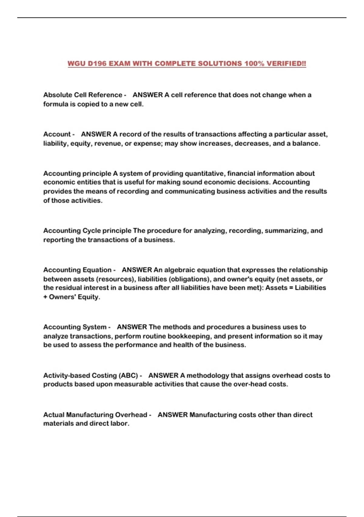 WGU D196 EXAM WITH COMPLETE SOLUTIONS 100% VERIFIED!!