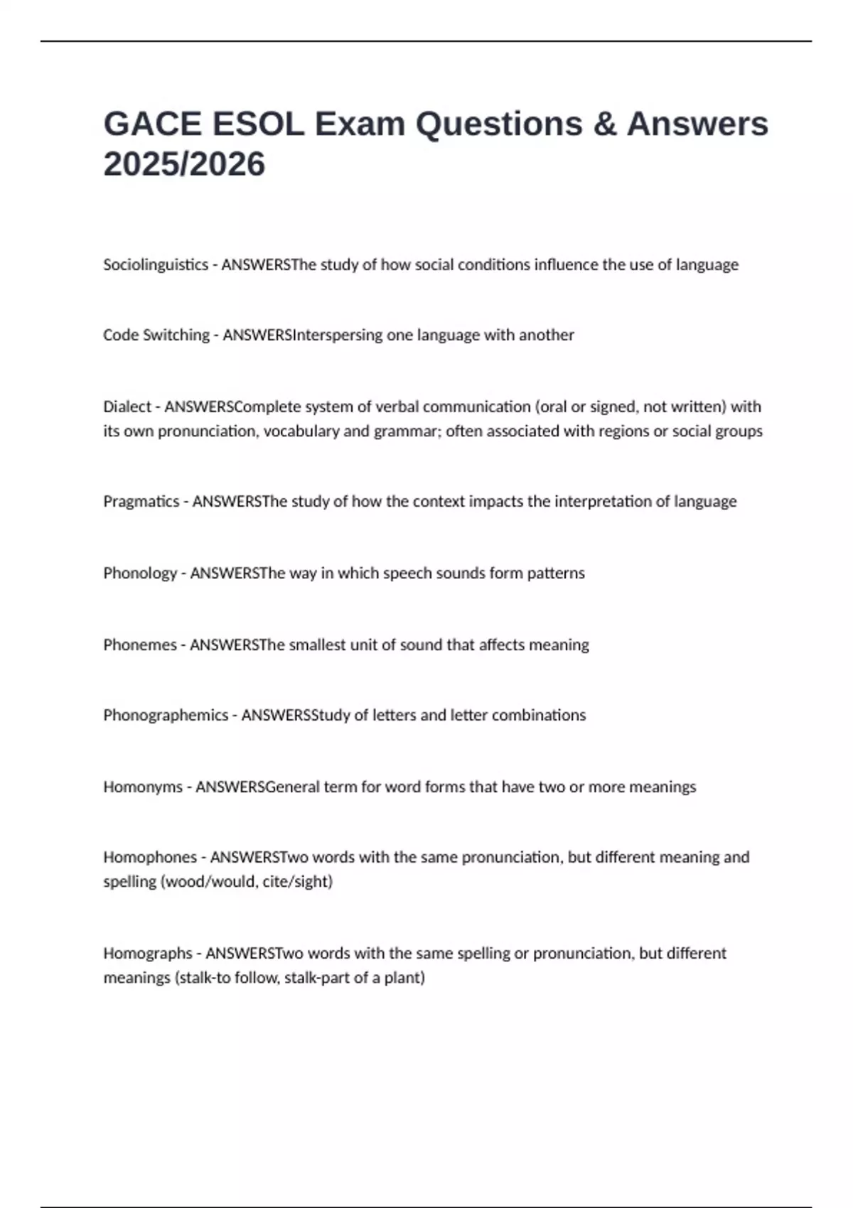 GACE ESOL Exam Questions & Answers 2025/2026