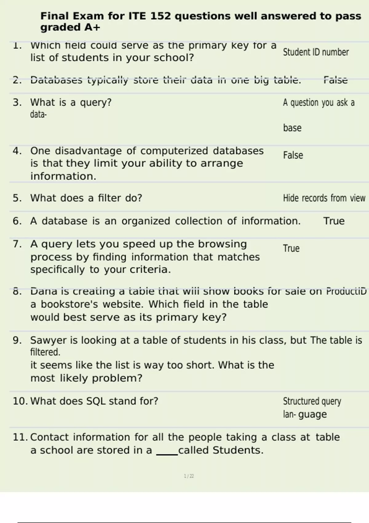 QUALITY WORK OF ALL KIND OF QUIZ or EXAM WITH GUARANTEE OF AN A+ latest updates Im an expert on major courses especially; psychology,Nursing, Human resource Management & Project writing. Assisting students with quality work is my first priority. I ensure scholarly standards in my documents . I assure a GOOD GRADE if you will use my work. Feel free to purchase n recommend others for 100% pass EXAMS!