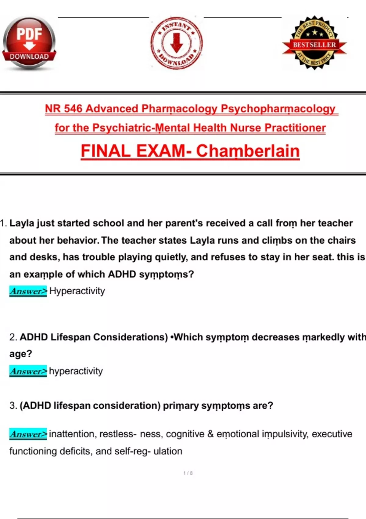 NR 546 / NR546 Final Exam Psychopharmacology for PMHNP (Latest 2025 / 2026): Most Comprehensive Qs & Ans - to Pass the Exam, 100% Verified
