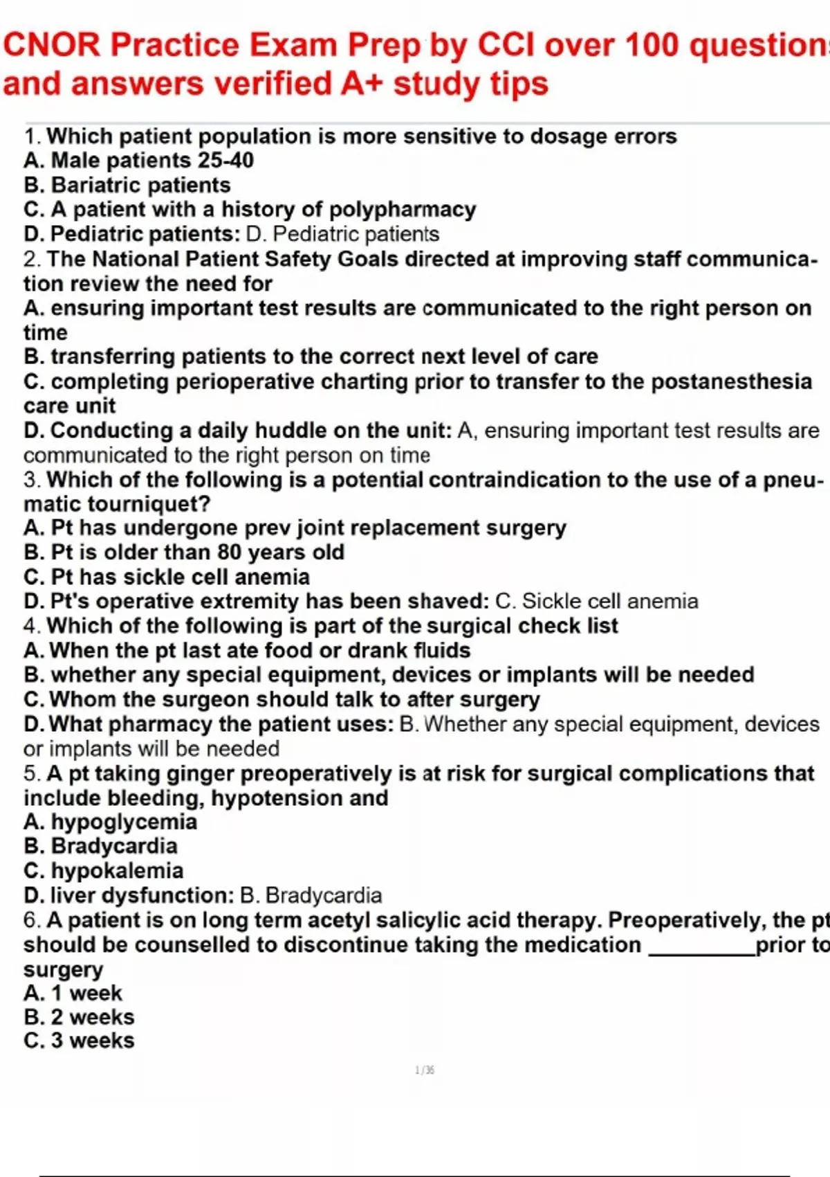 CNOR Practice Exam Prep by CCI over 100 questions and answers verified A+ study tips.pdf