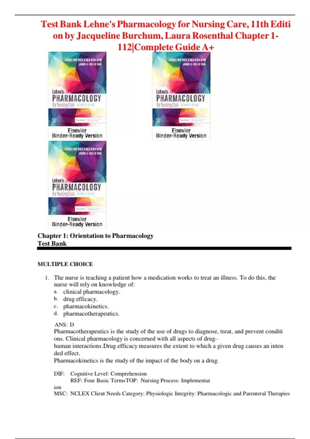 TEST BANK - Lehne's Pharmacology for Nursing Care, 12th Edition ( Jacqueline Burchum, Laura Rosenthal; 2024) Latest Edition || All Chapters 1-112