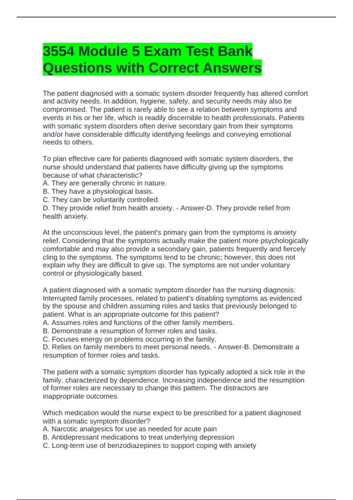 Test bank for Psychiatric Exam Bundle 100% Correct Answers