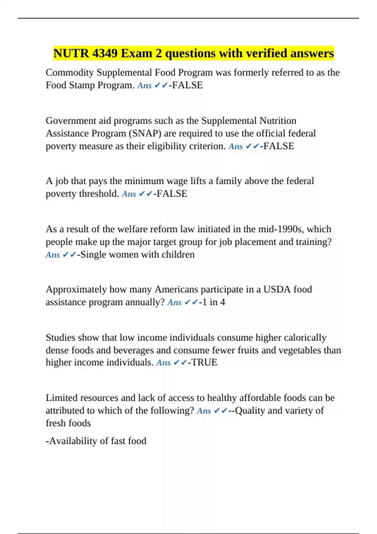 NUTR 4349 - EXAM 2 REVIEW questions with verified answers
