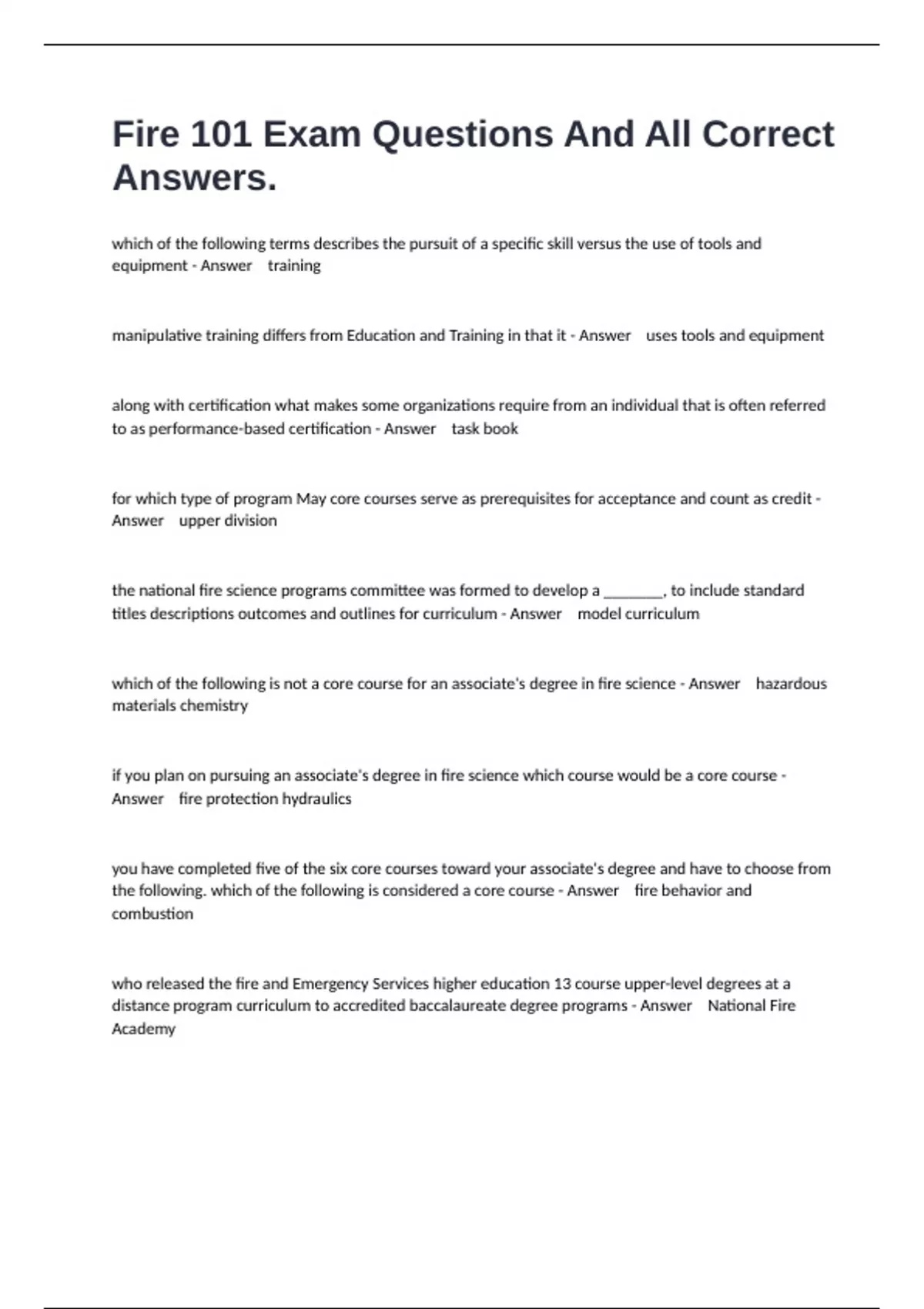 FIRE 101 EXAM BUNDLE SCORED A+ ( UPDATED AND VERIFIED)