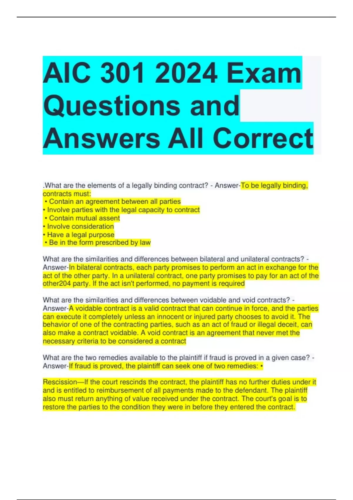 BUNDLE FOR AIC 301 EXAM QUESTIONS WITH 100% SOLVED ANSWERS