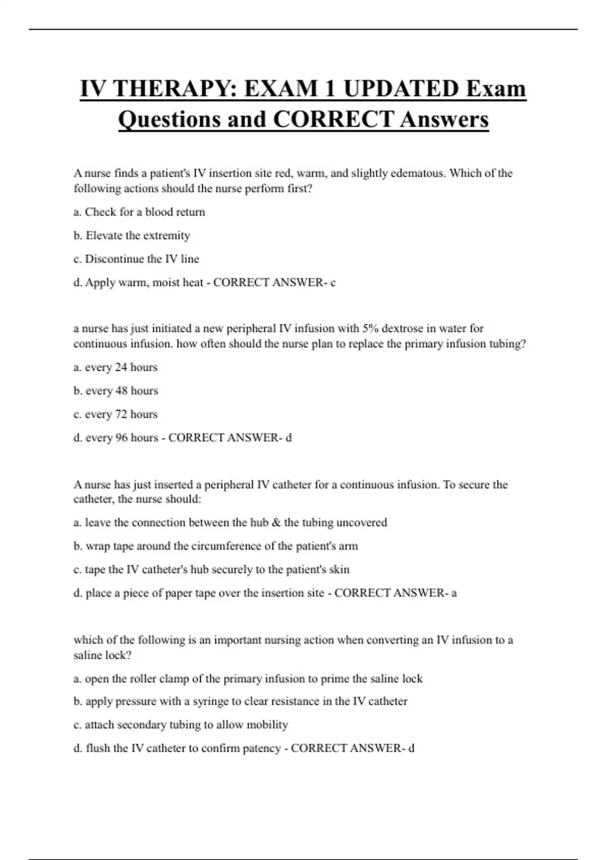 IV Therapy Bundled Exam Questions and CORRECT Answers