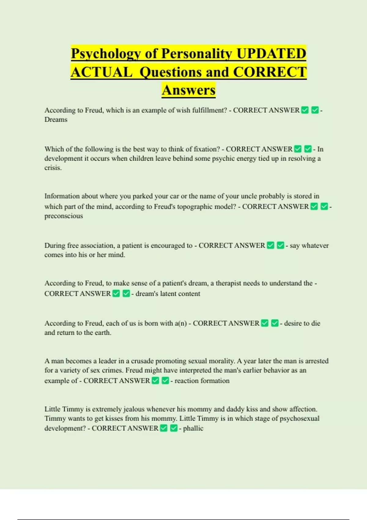 Personality Psychology Bundled Exam Questions WITH CORRECT Answers