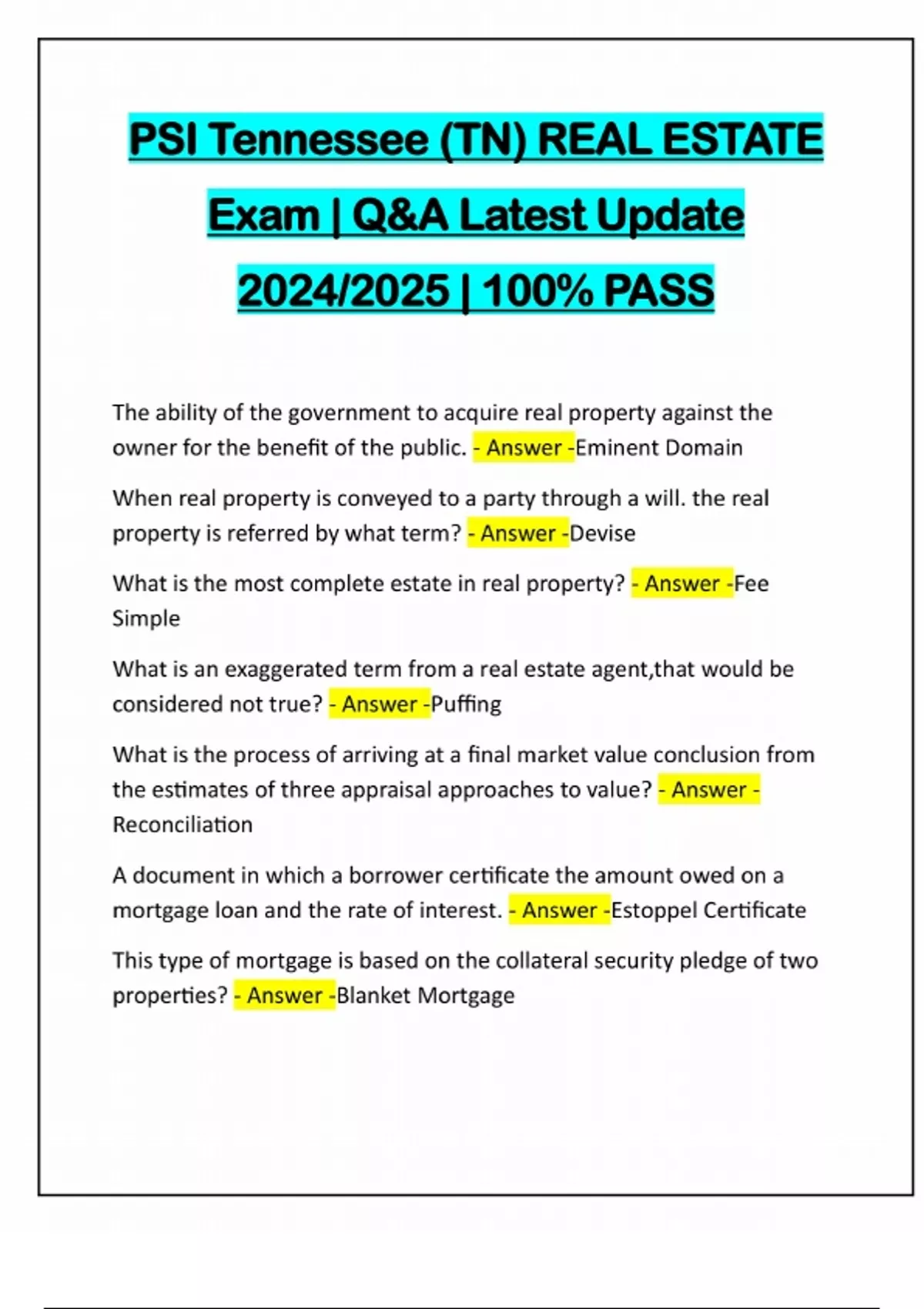 PSI REAL ESTATE TN BUNDLED EXAMS | QUESTIONS AND CORRECT ANSWERS | LATEST UPDATE 2024/2025