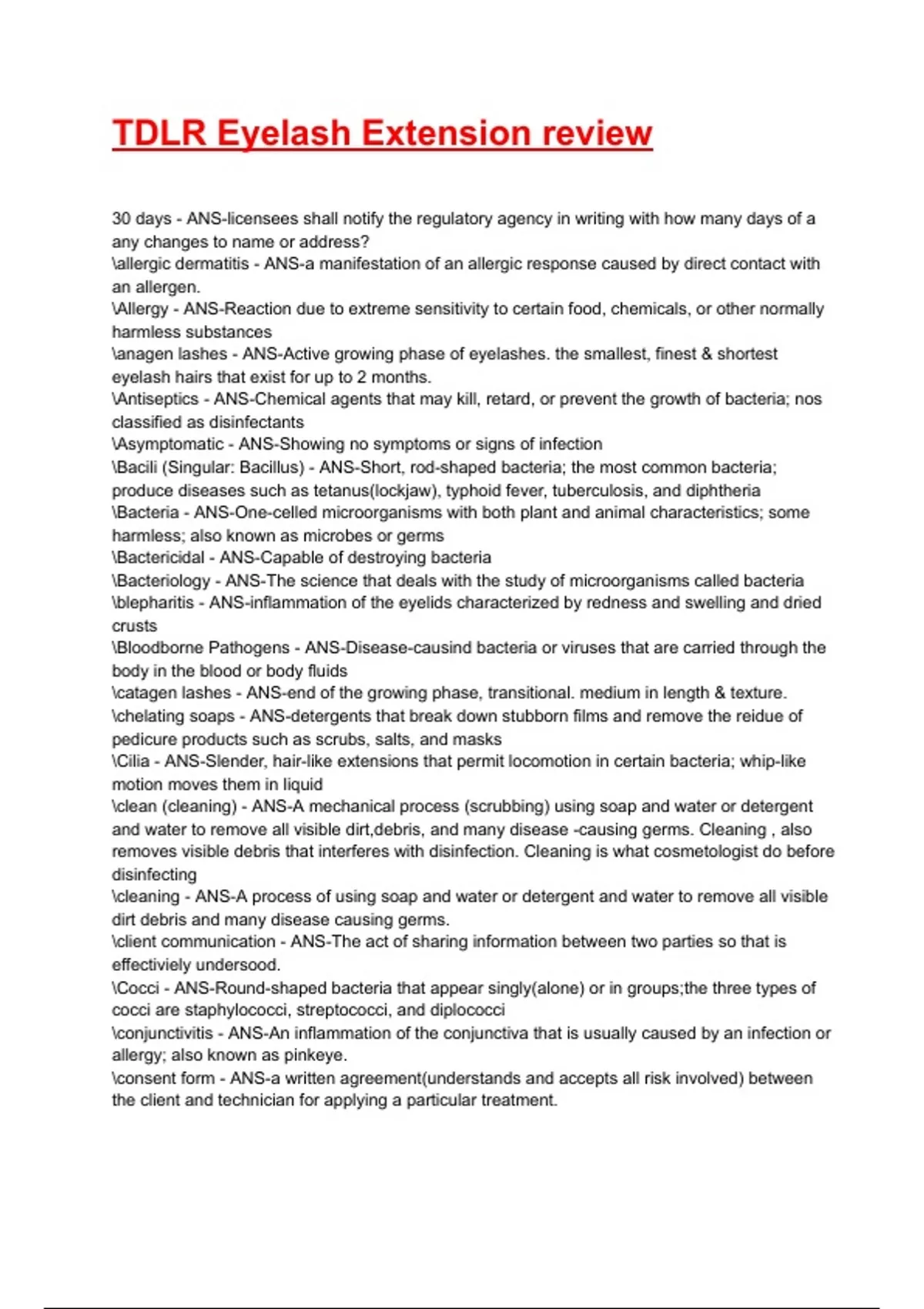 TDLR Eyelash Extension review Exam 2025/2026 Questions With Completed & Verified Solutions.