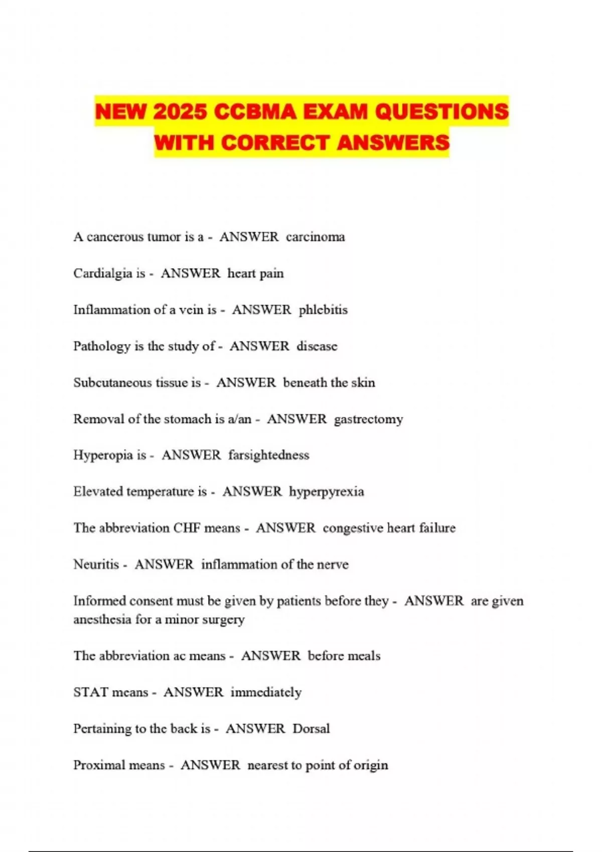 NEW 2025 CCBMA EXAM QUESTIONS WITH CORRECT ANSWERS