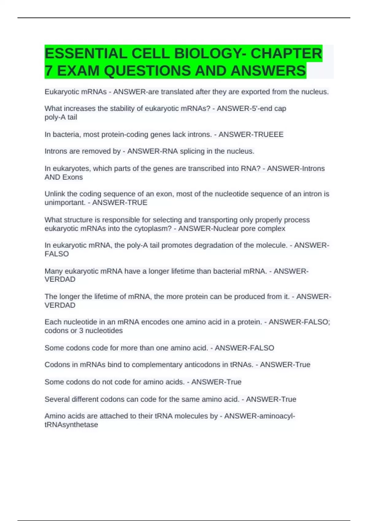 ESSENTIAL CELL BIO CHAPTER #19 STUDY GUIDE EXAM QUESTIONS AND ANSWERS 2 Exam (elaborations) ESSENTIAL CELL BIO CHAPTER #19 STUDY GUIDE EXAM QUESTIONS AND ANSWERS 3 Exam (elaborations) ESSENTIAL CELL BIO- EXAM REVIEW QUESTIONS WITH CORRECT ANSWERS 4 Exam (elaborations) ESSENTIAL CELL BIOLOGY - CHAPTER #13 EXAM QUESTIONS WITH CORRECT ANSWERS 5 Ex