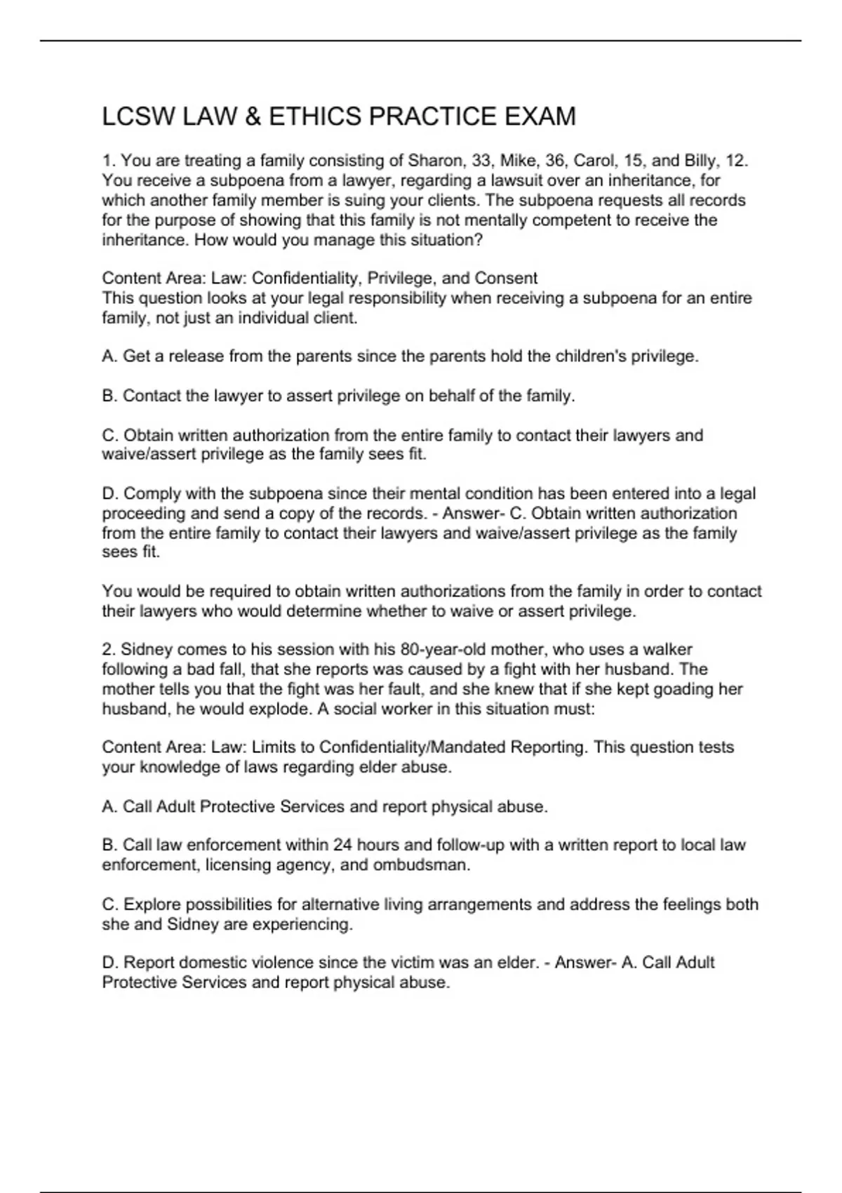 Exam (elaborations) LCSW EXAM PREP QUESTIONS & ANSWERS 2 Exam (elaborations) LCSW CLINICAL EXAM QUESTIONS & ANSWERS 3 Exam (elaborations) LCSW - EXAM PREP – ASSESSMENT QUESTIONS & ANSWERS 4 Exam (elaborations) LCSW PRACTICE QUESTIONS & ANSWERS 5 Exam (elaborations) SOCIAL WORK LCSW EXAM (PRACTICE) 6 Exam (elaborations) LCSW QUESTIONS AND ANSWE