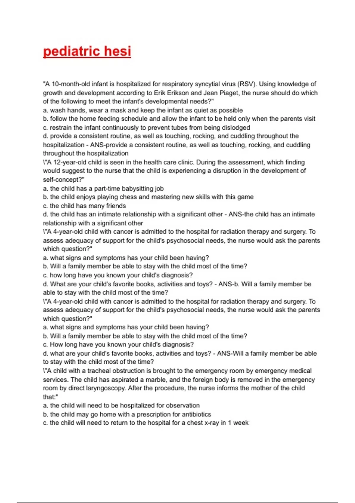 PEDIATRICS - HESI PRACTICE EXAM 2025/2026 QUESTIONS WITH COMPLETED & VERIFIED SOLUTIONS.