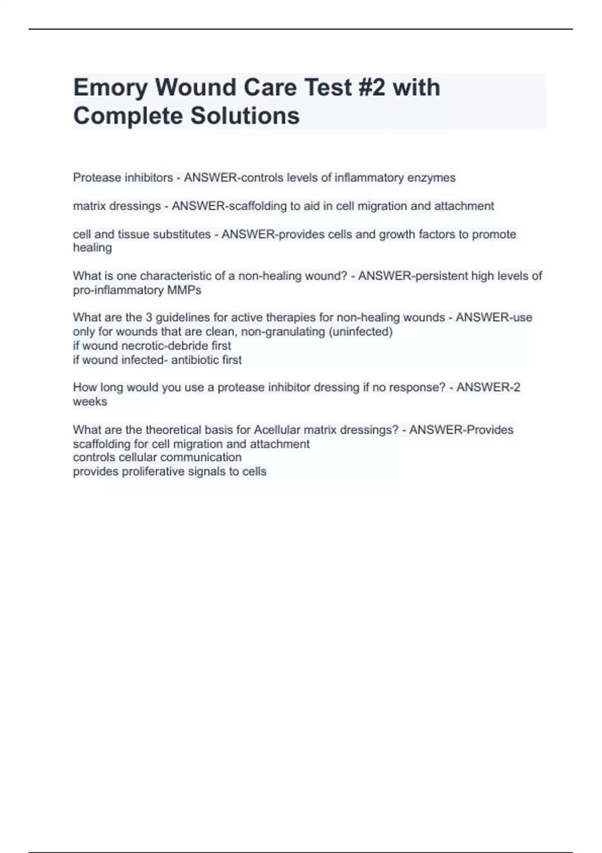 EMORY WOUND EXAM BUNDLE PACK|| QUESTIONS AND ANSWERS 100% CORRECT!!EMORY WOUND EXAM BUNDLE PACK|| QUESTIONS AND ANSWERS 100% CORRECT!!EMORY WOUND EXAM BUNDLE PACK|| QUESTIONS AND ANSWERS 100% CORRECT!!EMORY WOUND EXAM BUNDLE PACK|| QUESTIONS AND ANSWERS 100% CORRECT!!EMORY WOUND EXAM BUNDLE PACK|| QUESTIONS AND ANSWERS 100% CORRECT!!EMORY WOUND EXA