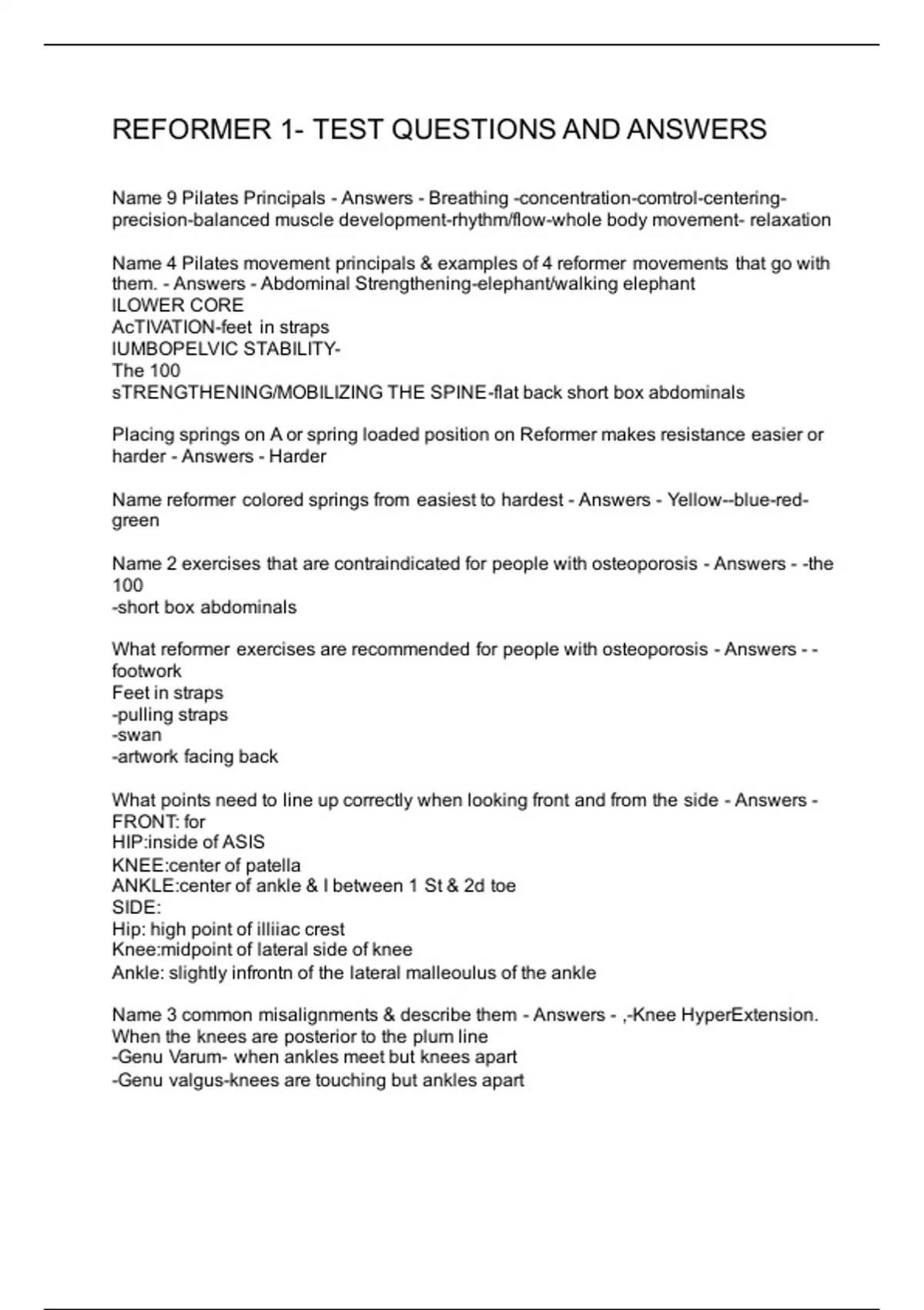 REFORMER QUIZ QUESTIONS AND ANSWERS 2 Exam (elaborations) REFORMER PILATES QUESTIONS & ANSWERS 3 Exam (elaborations) REFORMER 1 QUESTIONS AND ANSWERS 4 Exam (elaborations) REFORMER 1- TEST QUESTIONS AND ANSWERS 5 Exam (elaborations) REFORMER TEST QUESTIONS AND ANSWERS