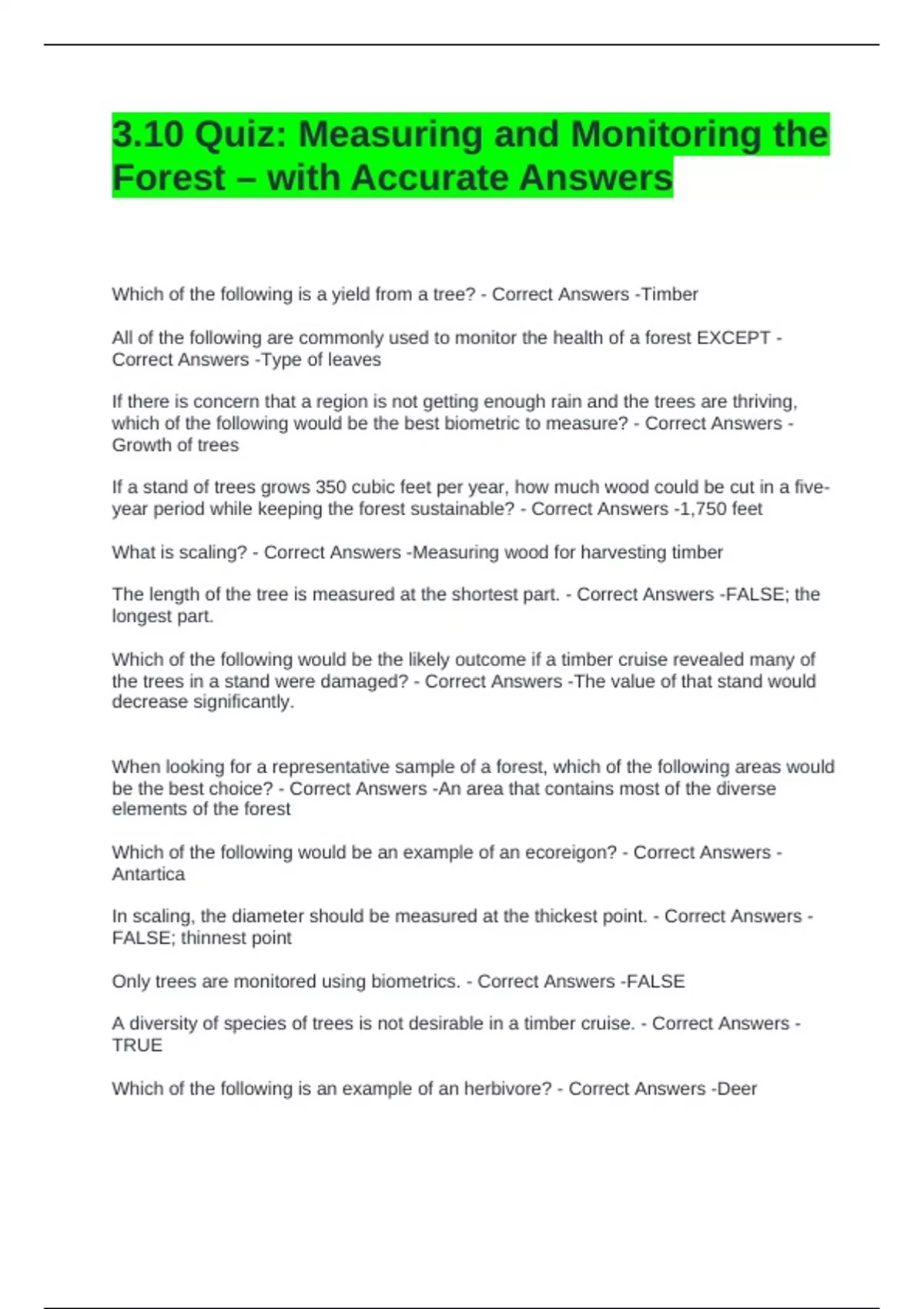 1 Exam (elaborations) Forestry Exam 3 (Forest Mensuration, Silviculture) Questions and Answers 2 Exam (elaborations) Forest mensuration quiz with complete solutions 3 Exam (elaborations) Forest Mensuration Midterm 1 Exam Questions and Answers 4 Exam (elaborations) Forest Mensuration Final Exam Questions with Verified Answers 5 Exam (elaboration