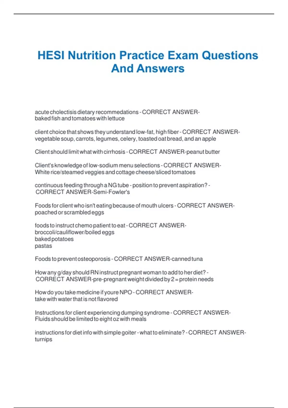 LATEST HESI Nutrition Practice Exam Questions And Answers Hesi nutrition Questions And Answers Questions And Answers On HESI Nutrition HESI Nutrition Practice Exam Questions And Answers Practice Exam On HESI Nutrition (QUESTIONS AND ASWERS) HESI Nutrition Practice Exam Questions And Answers Nutrition Hesi Questions And Answers Nutrition: HESI Pract