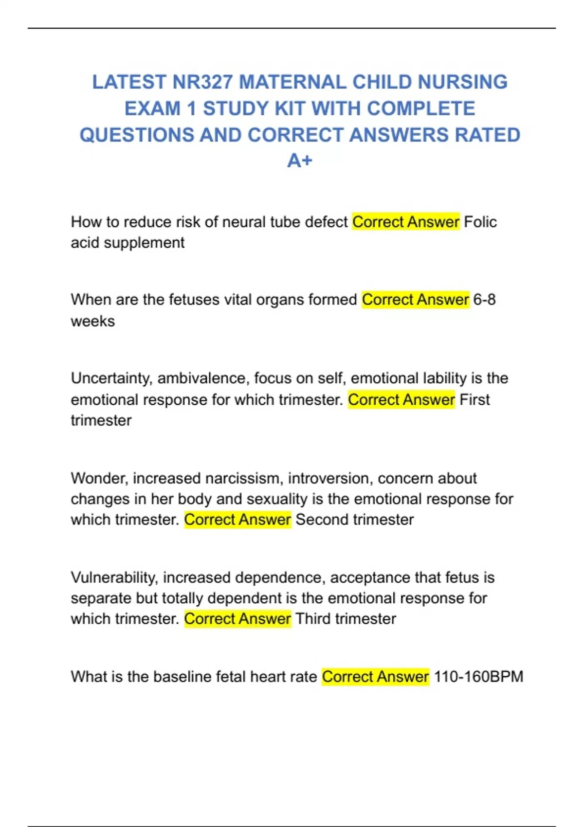 NR 327- MATERNAL CHILD EXAM QUIZLETS AND FINAL EXAM 2025 ACTUAL EXAM WITH COMPLETE QUESTIONS AND CORRECT ANSWERS RATED A+