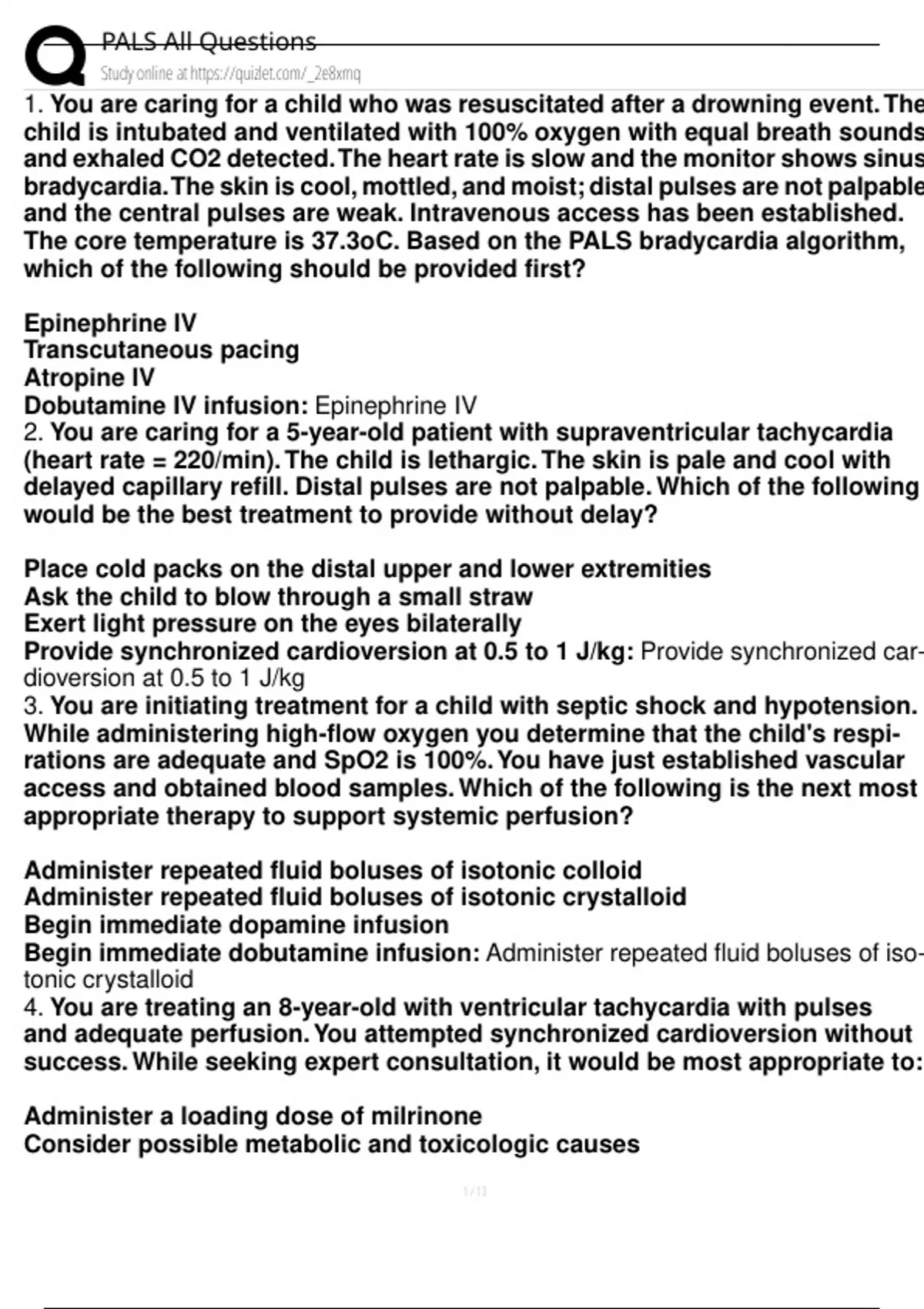 2020 Pals Exam A with suitable question and answers Heartcode PALS Exam with qualified question and answers PALS Exam with the best suitable question and answers PALS Exam with the best qualified question and answers PALS Pre Assessment 1 Exam with verified question and answers PALS 2025 Exam with verified question and answers PALS Precourse Exa