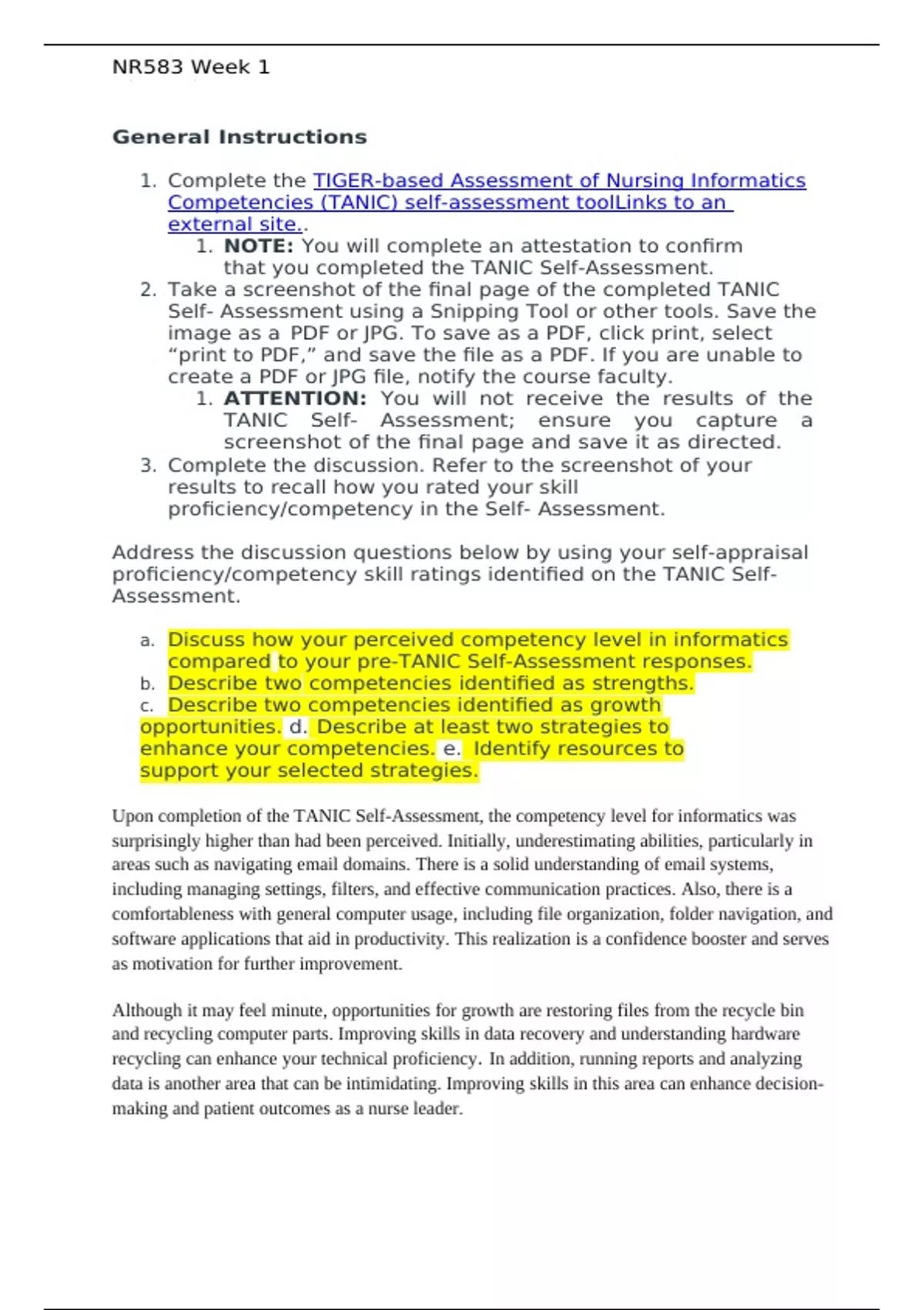 NR 583NP Week 1 Discussion; TANIC Self-Assessment.