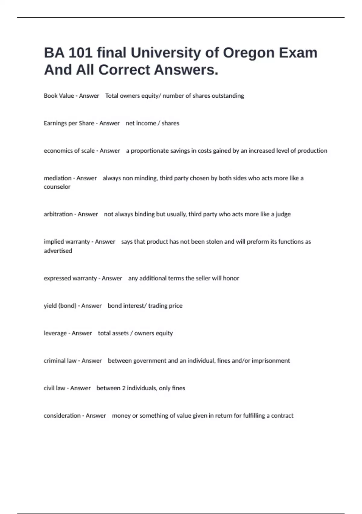 1 Exam (elaborations) BA 101 - Midterm 1 (UO) Revision Exam And Answers Rated A+. 2 Exam (elaborations) BA 101 UNIVERSITY OF OREGON EXAM AND ALL CORRECT ANSWERS. 3 Exam (elaborations) BA 101 Midterm 3 University of Oregon Exam Questions And Answers Graded A+. 4 Exam (elaborations) BA 101 Midterm 2 – UO Study Guide Exam And Actual Answers.
