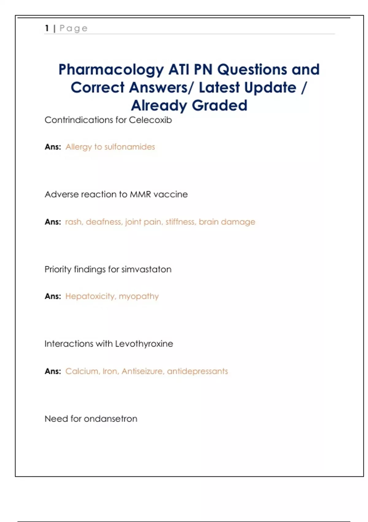 ATI PN Questions and Correct Answers/ Latest Update / Already Graded