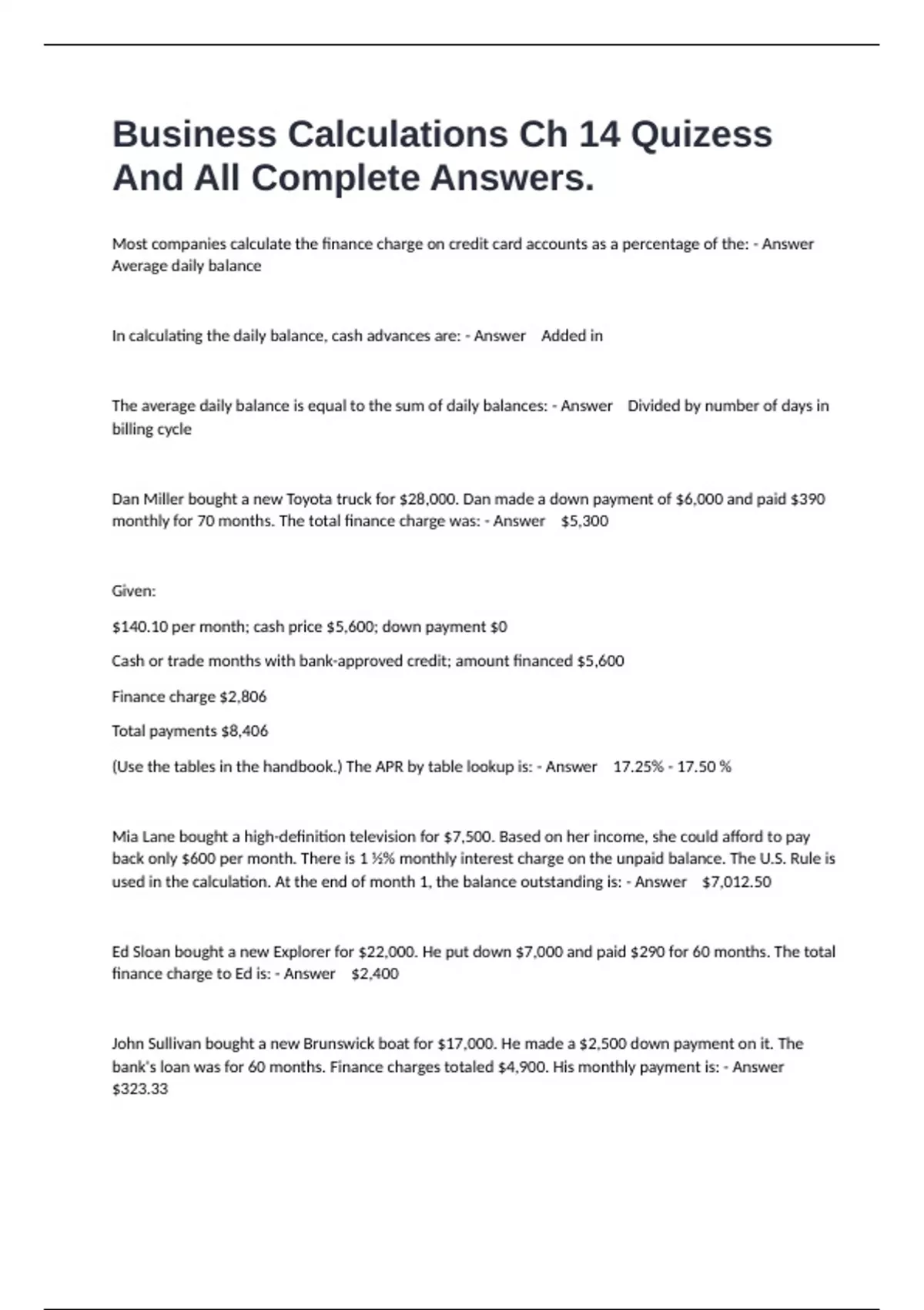 Business Calculations Exam ( Questions And Answers Graded To Pass) Package Deal Bundle !!