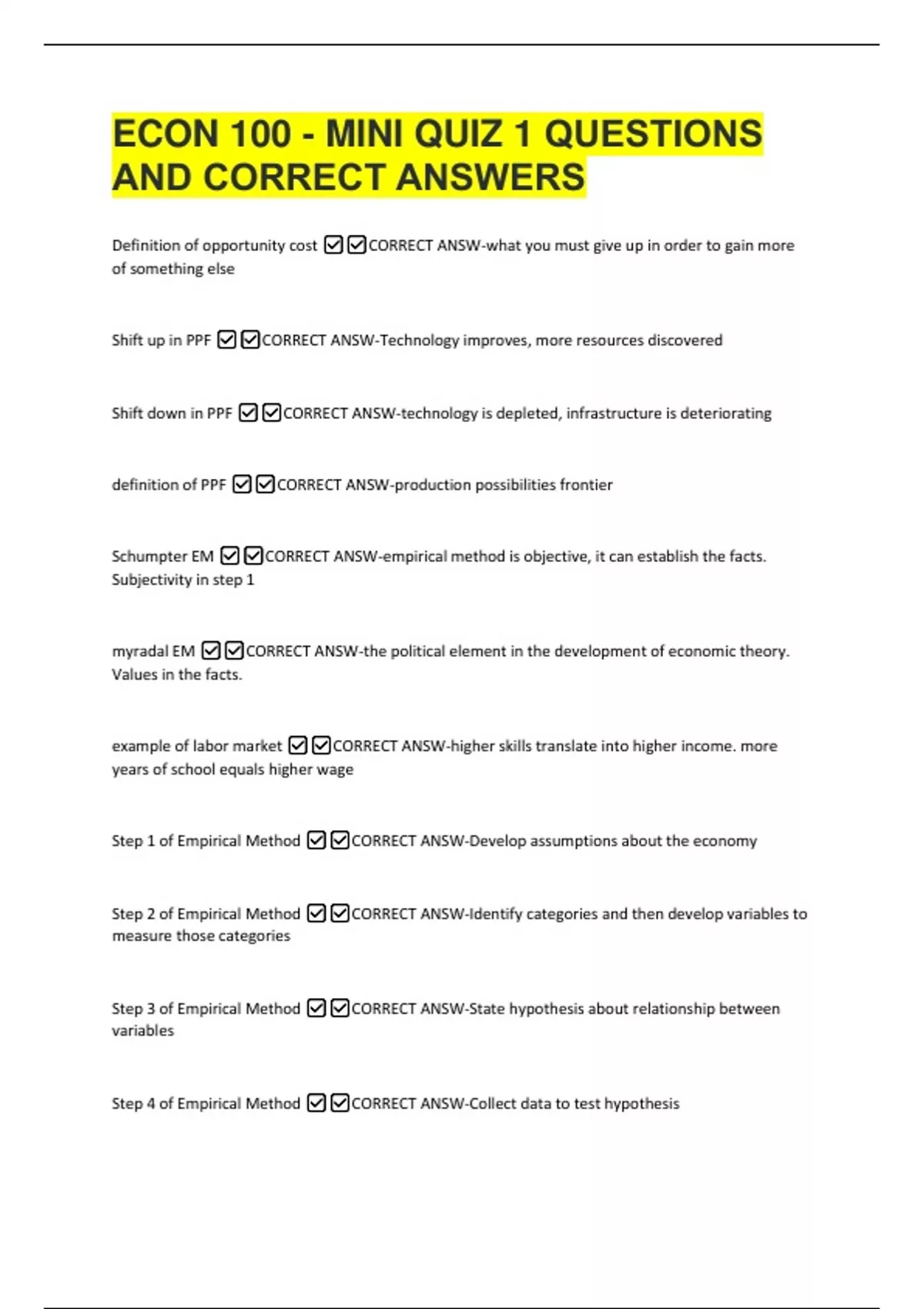 ECON 100 - MINI QUIZ 1 QUESTIONS AND CORRECT ANSWERS 2 Exam (elaborations) ECON 100 FINAL QUESTIONS AND CORRECT ANSWERS 3 Exam (elaborations) ECON 100 MIDTERM QUESTIONS AND CORRECT ANSWERS 4 Exam (elaborations) ECON 100 CHAPTER 1 QUESTIONS AND CORRECT ANSWERS 5 Exam (elaborations) ECON 100 MIDTERM QUESTIONS AND CORRECT ANSWERS 6 Exam (elaborat