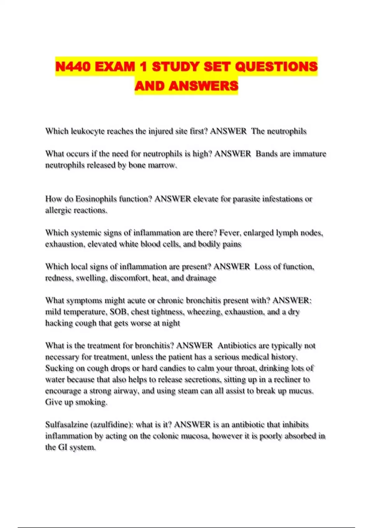 N440 INFLAMMATION AND IMMUNITY EXAM 1 QUESTIONS WITH VERIFIED ANSWERS